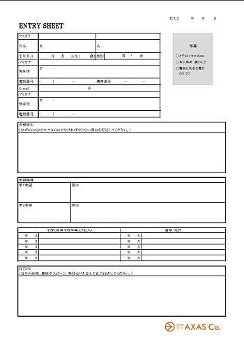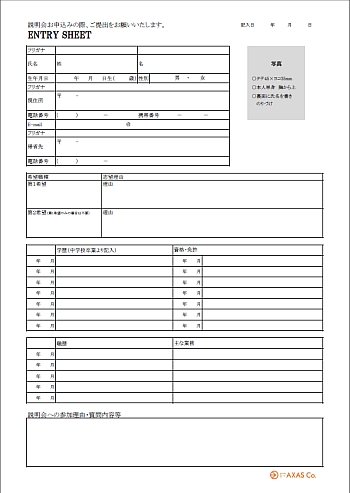書類選考にご応募いただく際に、履歴書と併せてエントリーシートをご提出ください。